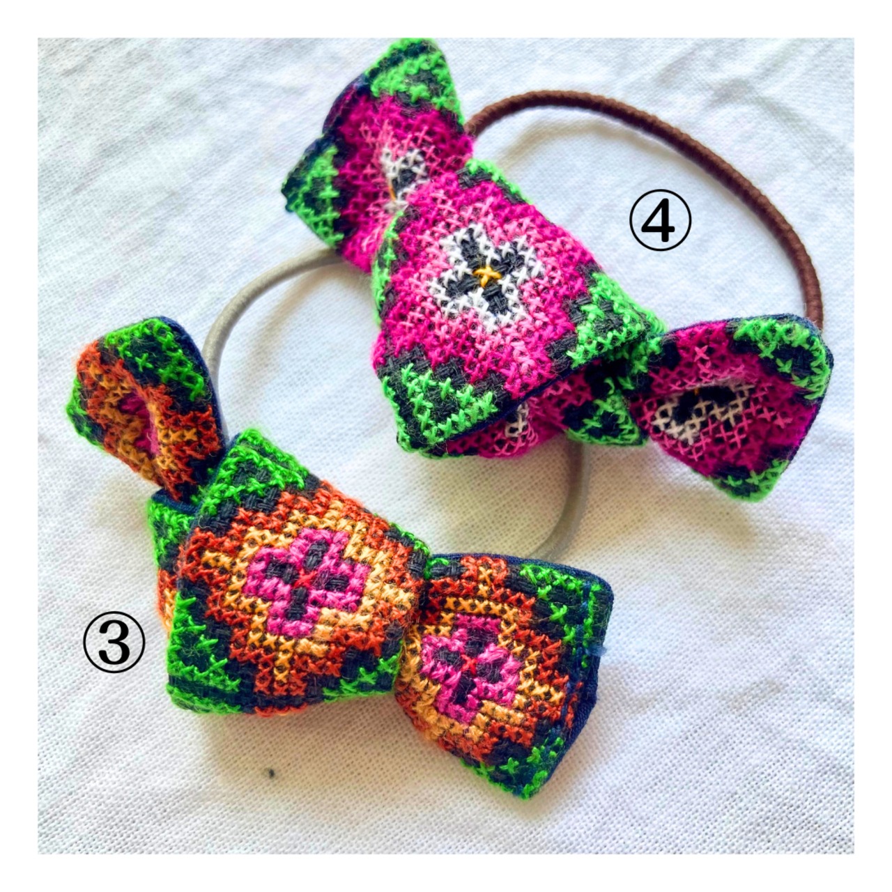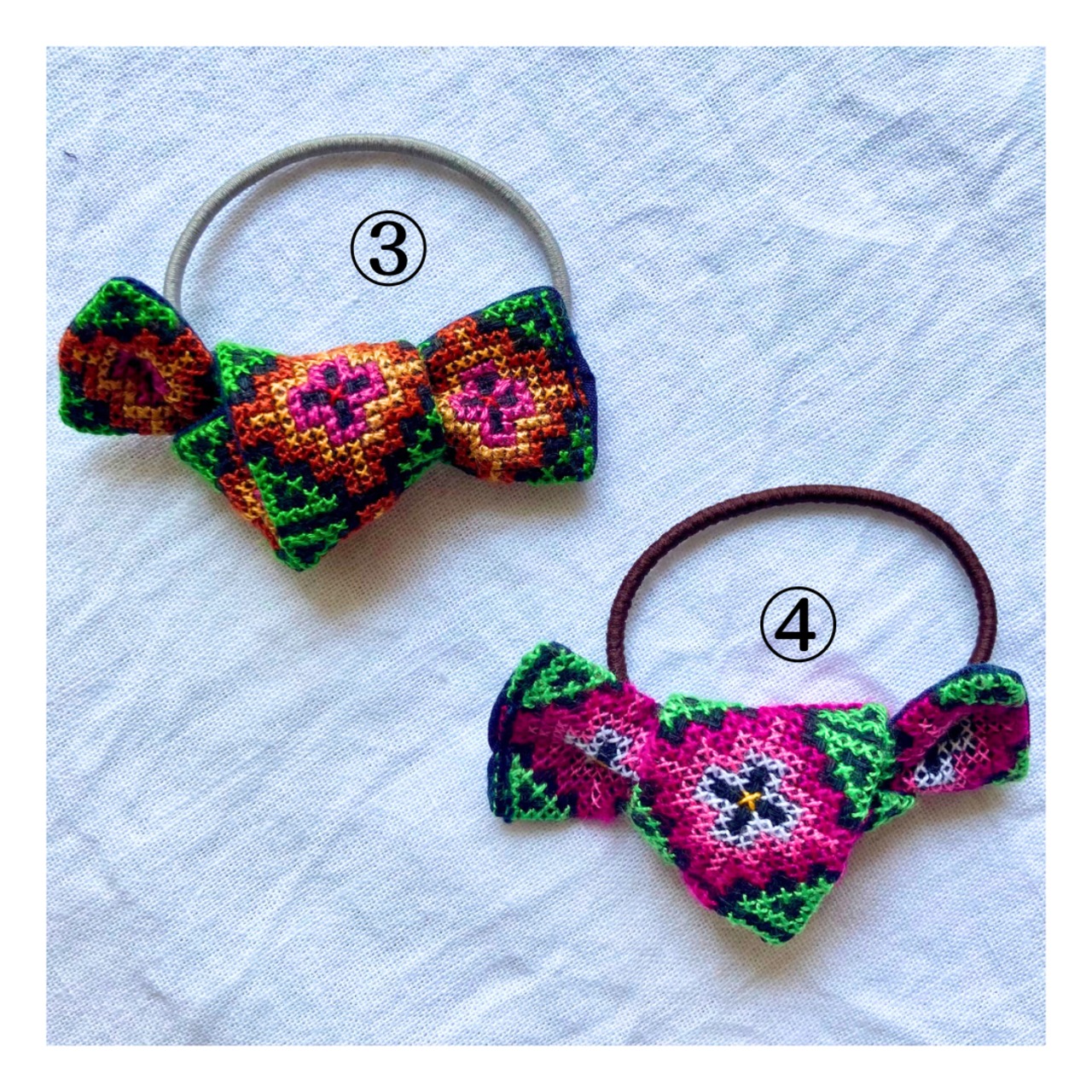 モン族の刺繍が目を惹くヘアゴム